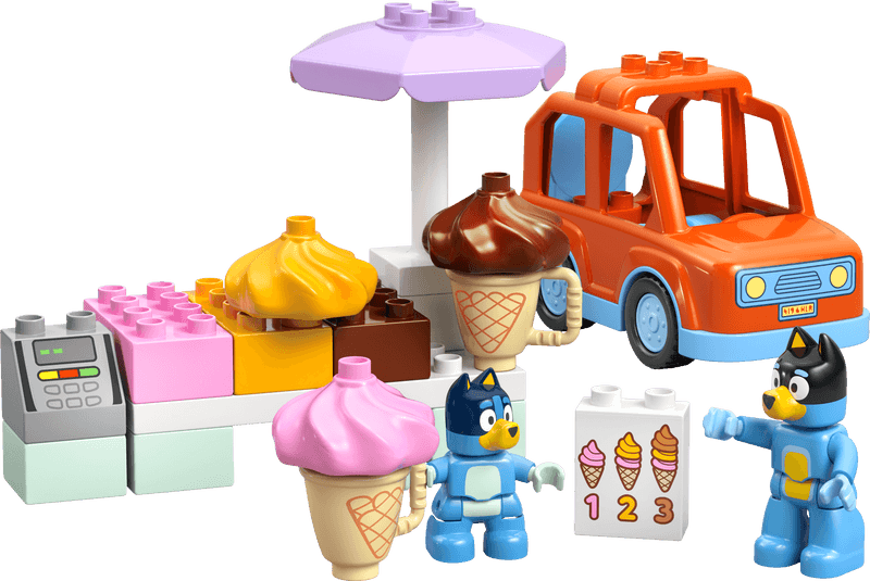 LEGO 10458 Een ijsje halen met Bluey is een bouwset voor kinderen vanaf 2 jaar, met 22 onderdelen.