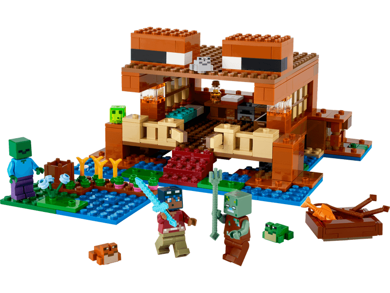 LEGO Het kikkerhuis (21256) is een bouwset die kinderen vanaf 8 jaar meeneemt naar de wereld van Minecraft. Dit product heeft de vorm van een kikker en biedt een leuke speelervaring. Kinderen kunnen het huis bouwen en vervolgens verschillende speelscenario’s uitproberen. Het kikkerhuis bevat authentieke details zoals een bed, tafel, werkbank en oven. Buiten kunnen kinderen een boerderij maken met bieten, tarwe en bloemen. Ook is er een meer waar ze met een hengel en een speelgoedboot kunnen spelen. Het model bevat drie soorten kikkers en een slijm, wat zorgt voor extra interactie. Deze set bevat ook een moerasverkenner, een zombie en een drenkeling met drietand. De LEGO Builder app biedt digitale bouwinstructies, waarmee kinderen hun voortgang kunnen bijhouden en het model in 3D kunnen bekijken. Met 400 onderdelen is er genoeg te bouwen en te ontdekken.